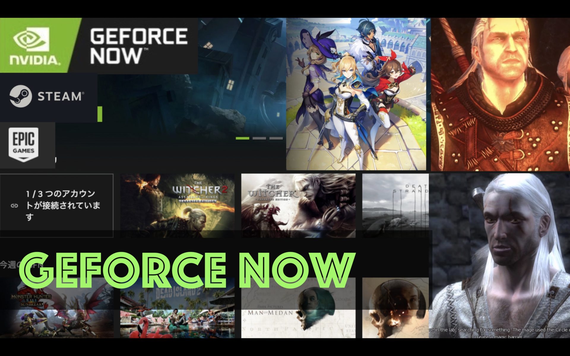 原神はSteamのようなプラットホームを介さないため、Geforce NOW無料プランで無料でプレイ可能です。しかし、ウィッチャー2のようなSteamを利用するゲームについてはあらかじめゲームを購入する必要があります。 - 全てのゲームができるわけではない