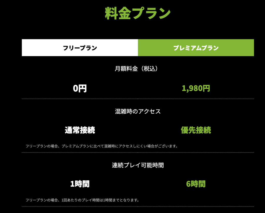 - 無料プランだからといってSteam、Epic gamesのゲームを無料できるというわけではない