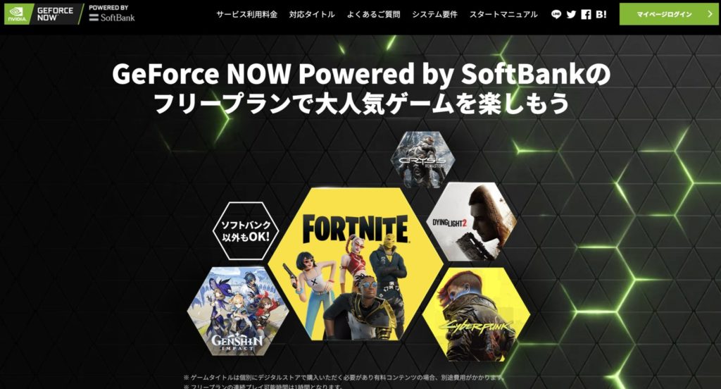 Geforce NOWは、NVIDIAが提供するクラウドゲームサービスの名称です(日本では、Softbankとauがサービスを展開しています)。このサービスでは、ユーザーは自分のコンピューターやスマートフォン、タブレットなどから、NVIDIAが提供する高性能なクラウドサーバーを利用して、高品質なゲーム体験を楽しむことができます。これまでは、ゲーム機を持っていないとプレイできなかったゲームがスペックの見合わないPCやスマホとかでできちゃうとかいう画期的な技術です。